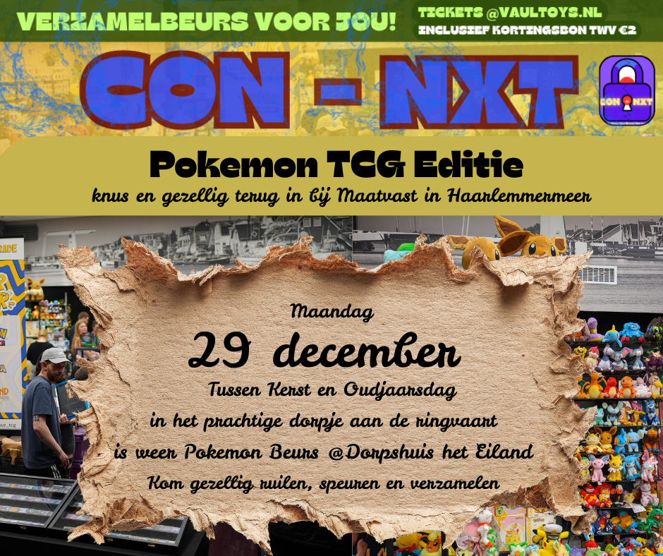 Maandag 29 december, de saaiste dag van het jaar. Geen werk, net klaar met kerst en wachten op oudjaarsavond. Con-NXT Pokemon TCG editie is er voor jou. Terug in Beinsdorp(Haarlemmermeer) van 10.00-16.00