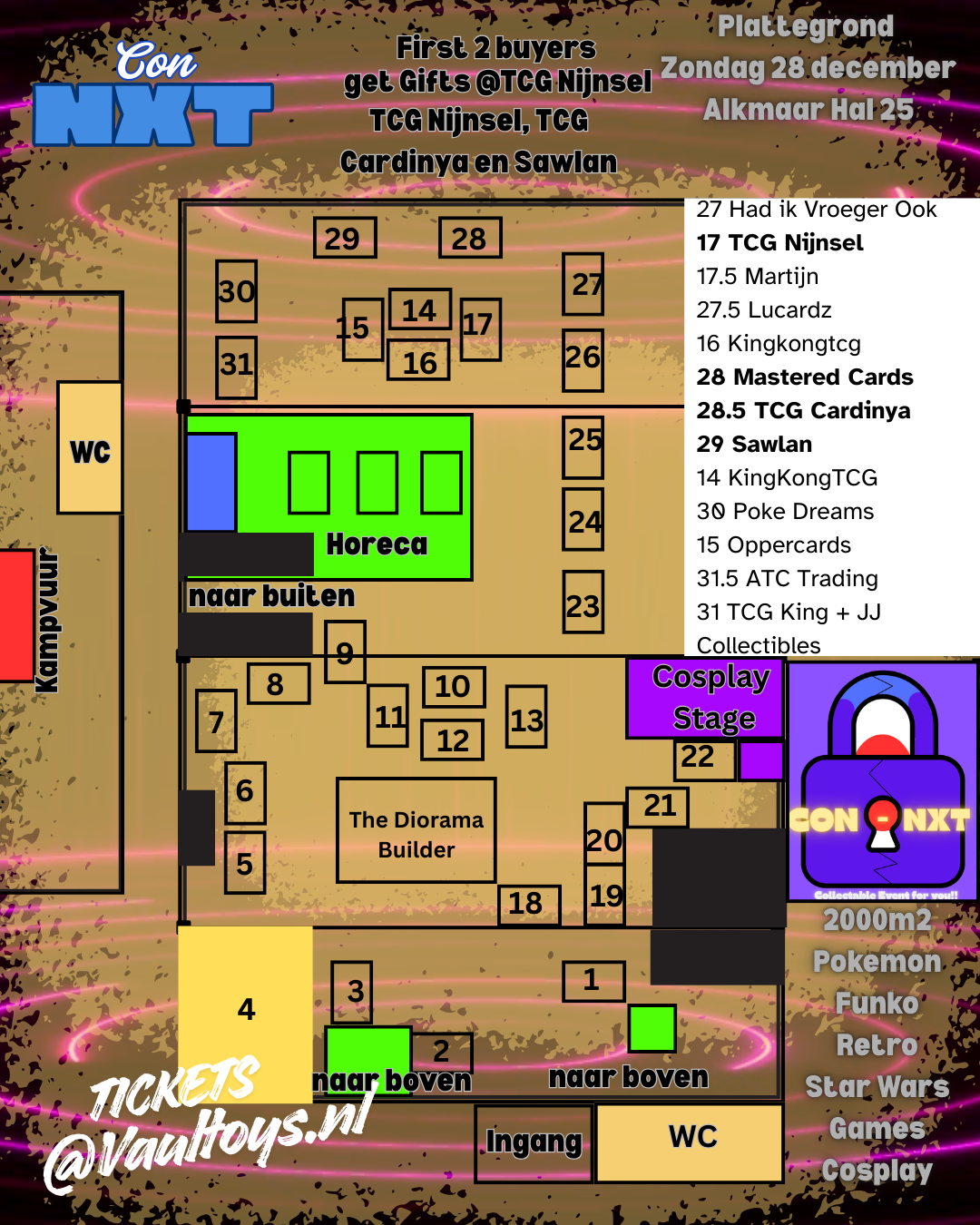 Plattegrond Con-NXT Alkmaar! Tickets via het menu.